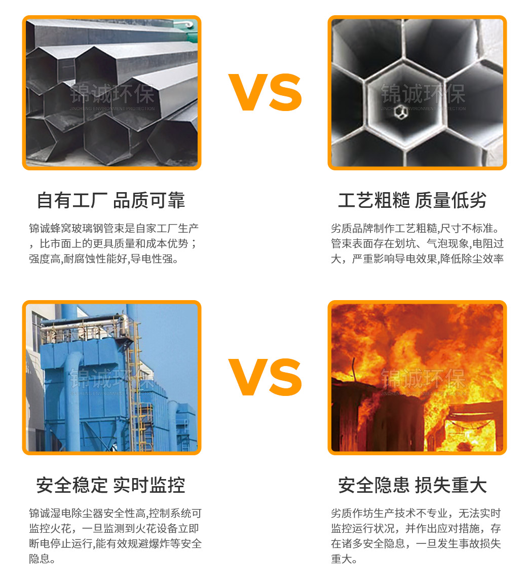 結(jié)構(gòu)緊湊。蜂窩型結(jié)構(gòu)使每個(gè)極管的內(nèi)外表面都成為沉淀極表面。極管之間不存在死區(qū)。它的體積小,占地面積少、重量輕、機(jī)械強(qiáng)度高、外形尺寸穩(wěn)定,設(shè)備使用壽命長(zhǎng)。