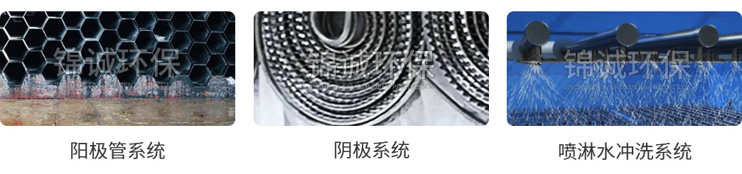 陰極系統(tǒng)包括陰極電暈線及與陰極線配套的整體固定框架;陰極框架采用不銹鋼或者碳鋼作為骨架,并用玻璃鋼進(jìn)行防腐處理。陰極線為高效芒刺極線,材料為不銹鋼/鉛銻合金/鈦合金等,起暈電壓低,電場(chǎng)均勻。